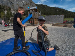 Die Kinder hatten viel Spaß am Radparcours, wo sie ihre Geschicklichkeit und Balance testen konnten. Zudem konnten sie an einer kleinen Spritztour im Lastenrad und in der Rikscha teilnehmen und sich auf der Hüpfburg austoben.